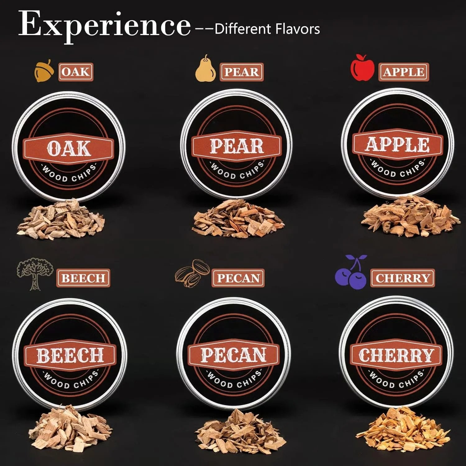 Wood Chips: 6 Types (Apple, Cherry, Hickory, Beech, Oak, Cherry)